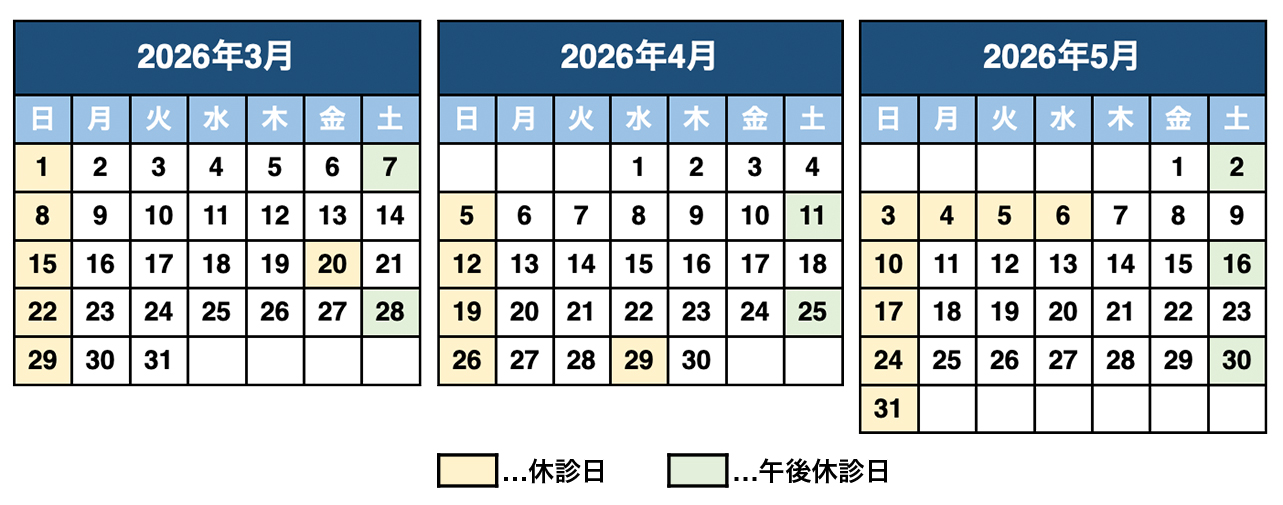 3月・4月・5月休診日のお知らせ